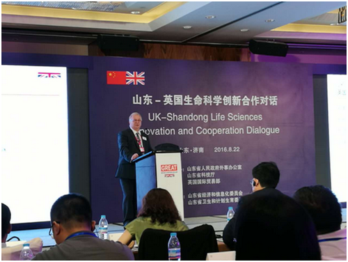 為促進山東省與英國在生命科學(xué)領(lǐng)域的創(chuàng)新合作,由山東省外事辦公室、山東省科技廳、英國駐華大使館、英國貿(mào)易投資總署共同主辦,山東省經(jīng)信委、山東省衛(wèi)計委協(xié)辦的“山東•英國生命科學(xué)創(chuàng)新