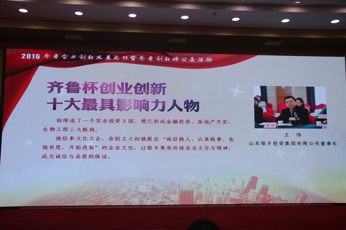 2016年3月26日,由《聯(lián)合日報》社、山東省創(chuàng)業(yè)促進(jìn)會、《齊魯網(wǎng)》、《聯(lián)合網(wǎng)》主辦的山東省創(chuàng)業(yè)創(chuàng)新高端論壇暨首屆齊魯創(chuàng)業(yè)創(chuàng)新榜大型公益活動在山東省政協(xié)會堂隆重舉行。