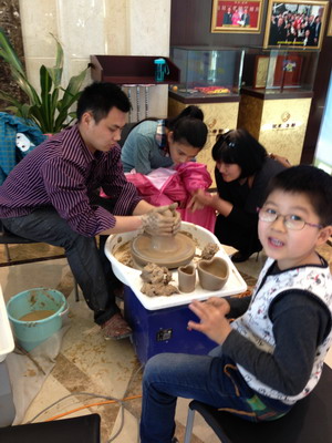 陶的藝術(shù),透著原始的魅力,散發(fā)著泥土的芬芳。4月29日走進(jìn)銀豐唐郡項(xiàng)目營(yíng)銷(xiāo)中心時(shí),不少客戶(hù)已在親手體驗(yàn),專(zhuān)業(yè)陶藝師傅手手相傳,中心點(diǎn)的尋找、捏的技術(shù)、塑性的技巧都是制做一個(gè)好的工藝品的關(guān)鍵。
