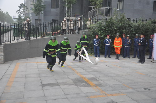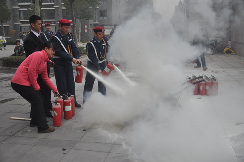 最后,演習人員又給員工和業(yè)主演示了消防水帶的連接和滅火器的使用方法?,F(xiàn)場員工和業(yè)主們積極參與了此次實踐,了解和掌握了正確使用滅火器材的方法,提高了處理初起火災的能力。