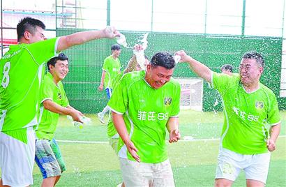 終場哨響后,菲比88二隊的隊員非常興奮,他們用潑灑香檳的方式慶祝捧得冠軍獎杯和2000元冠軍獎勵,本屆“銀豐·唐郡”杯濟南市籠式五人制足球業(yè)余聯(lián)賽就這樣在一片喜慶的氣氛中圓滿落幕。