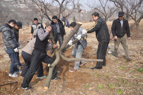 3月1日早上七點(diǎn)半,在物業(yè)公司領(lǐng)導(dǎo)的組織下,各項(xiàng)目員工共40余人一同前往贊助林區(qū)。大家分成五個(gè)小組,定額采挖樹苗任務(wù)。各小組組織縝密、分工明確,均超額完成了預(yù)定任務(wù),共栽種100余科樹苗。與此同時(shí),為了保證樹苗的成活率,銀豐花園、銀豐山莊、康橋頤東社區(qū)的業(yè)主在綠化中心師傅的指導(dǎo)下,紛紛在各社區(qū)綠化帶挖好樹坑等待栽種。
