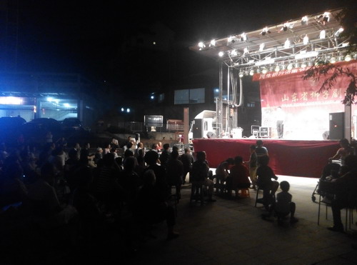 2014年9月9日,銀豐物業(yè)攜手民生銀行在銀豐山莊小廣場舉行消夏晚會(huì),邀請了山東柳子劇團(tuán)的演員們?yōu)闃I(yè)主呈現(xiàn)了一臺(tái)精彩的文藝演出。