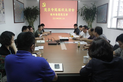 2014年9月11日,山東銀豐投資集團有限公司黨支部專題組織生活會在集團會議室召開,控股集團總部12名黨員參會,舜玉街道辦事處黨工委張文輝副書記、黨辦齊巍巖主任出席會議并監(jiān)督指導(dǎo)。