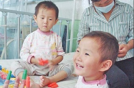 歡歡和樂樂今年兩歲半了,是一對可愛的雙胞胎小姐妹。去年6月,剛滿一歲的妹妹樂樂被查出患上嚴(yán)重的白血病,給這個原本就不富裕的家庭蒙上了陰影。然而就在前幾天,父親帶妹妹來醫(yī)院化療時,姐姐歡歡也被查出了白血病。雙胞胎小姐妹雙雙罹患白血病的不幸遭遇,牽動著眾多好心人的心。2012年10月8日,歡歡、樂樂的治療出現(xiàn)新的希望。山東省臍血庫醫(yī)學(xué)推廣中心主任安祥程聯(lián)系到齊魯晚報,稱山東省臍血庫可以免費為歡歡、樂樂做造血干細胞的配型查找。