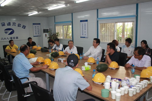 8月7日,在濟南市體育局黨委委員、副局長李國綱,濟南市體育局黨委委員、濟南市奧林匹克體育中心主任、黨委書記杜在東的帶領下,濟南市體育局黨的群眾路線教育實踐活動領導小組一行10人到銀豐唐郡項目調研。