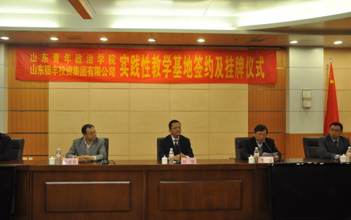 10月25日,山東銀豐集團副總裁、山東銀豐地產集團董事長劉旭一行五人前往山東青年政治學院,與山東青年政治學院簽訂了《實踐教學基地合作協(xié)議書》,并掛牌成立了“人才培養(yǎng)基地”。山東青年政治學院副院長李章泉、管理學院院長王怡紅代表學校參加了簽約儀式,對劉總一行表示熱烈的歡迎。