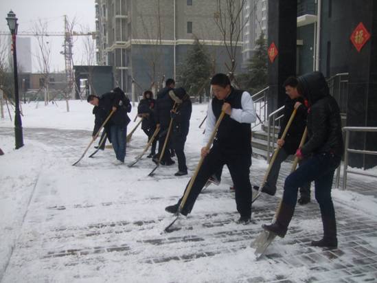 2011年2月27日,一場春雪再次飄落,在進一步凈化空氣、緩解旱情的同時,也給業(yè)主出行帶來了不便。為了保證道路通行順暢、小區(qū)業(yè)主能夠安全的出行,銀豐物業(yè)的全體員工,從凌晨6點開始,冒著嚴寒清掃路面積雪,極大地方便了小區(qū)居民早晨出行和車輛通行。