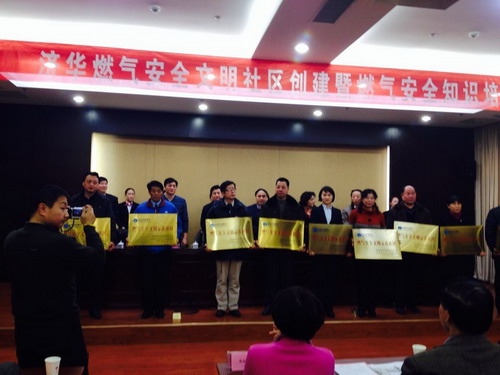 2014年1月15日上午,濟(jì)南市文明辦、市安監(jiān)局、市政公用事業(yè)局、濟(jì)華燃?xì)饴?lián)合召開“燃?xì)獍踩拿魃鐓^(qū)”表彰大會。