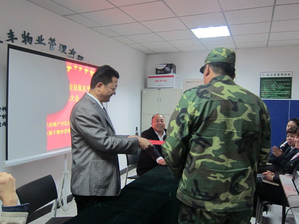 銀豐集團(tuán)副董事長劉旭、銀豐房產(chǎn)董事長布乃朋參與表彰大會(huì),現(xiàn)場(chǎng)為我們兩名保安頒發(fā)獎(jiǎng)金。希望張友平、高超珍惜榮譽(yù),再接再厲,為物業(yè)管理區(qū)域的安全穩(wěn)定發(fā)揮更大的作用。同時(shí),要求物業(yè)公司全體員工要以張友平、高超為榜樣,大力弘揚(yáng)愛崗敬業(yè)、忠于職守的精神,團(tuán)結(jié)一致,共同進(jìn)步,為銀豐物業(yè)增光添彩。