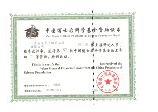 近日,中國博士后科學基金管理處公布了2015年度獲得中國博士后科學基金第57批面上資助的博士后研究人員名單。山東省齊魯干細胞公司博士后魏天迪獲中國博士后科學基金第57批面上資助二等資助,干細胞公司為本次面上資助山東省唯一獲此殊榮的博士后工作站。