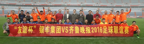 銀豐集團(tuán)自成立以來,堅持推行“誠信做人,認(rèn)真做事,張弛有度,開拓進(jìn)取”的企業(yè)文化。多年以來,銀豐集團(tuán)和齊魯晚報相互支持,無論是雙方領(lǐng)導(dǎo)還是基層員工,都建立起深厚的友誼。為了豐富員工業(yè)務(wù)生活,鍛煉身體,加強(qiáng)交流,雙方特意定在4月16日舉辦了這場足球聯(lián)誼賽。