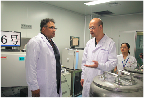 2016年9月8日,美國喬治城大學(xué)藥物開發(fā)中心主任米爾頓 . 布朗教授 (Prof. Milton Brown)攜助手王侃博士蒞臨銀豐生物工程集團(tuán)有限公司參觀考察。銀豐生物集團(tuán)總裁生德偉、山東省細(xì)胞組織庫主任曲廷瑜、銀豐生物集團(tuán)技術(shù)部總監(jiān)黃昕華等熱情接待并陪同參觀。