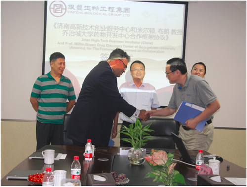 會上,濟(jì)南高新技術(shù)創(chuàng)業(yè)服務(wù)中心與喬治城大學(xué)藥物開發(fā)中心正式簽訂合作框架協(xié)議。這一協(xié)議的簽訂,為雙方在轉(zhuǎn)化研發(fā)成果、高素質(zhì)專業(yè)人才和專家交流項(xiàng)目打下堅(jiān)實(shí)基礎(chǔ)。