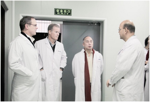 2017年1月8日,美國(guó)加州大學(xué)戴維斯分校(簡(jiǎn)稱:UC Davis)醫(yī)療健康部轉(zhuǎn)化企業(yè)和工業(yè)研究聯(lián)盟主任James J. Kovach和研究設(shè)施策劃Mark Romney ,在美國(guó)加州首府薩克拉門(mén)托市駐華經(jīng)貿(mào)及教育代表處運(yùn)營(yíng)主任王學(xué)英和首席代表容承澤的陪同下,蒞臨銀豐生物集團(tuán)參觀考察。銀豐生物工程集團(tuán)有限公司副總裁董白翔、總裁助理龐勇、研發(fā)部總監(jiān)黃昕華、山東省齊魯細(xì)胞治療工程技術(shù)有限公司總經(jīng)理郭紅等熱情接待并陪同參觀。