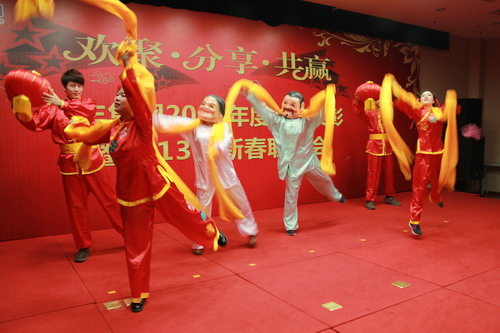 在一段喜慶歡快的舞蹈《紅紅的日子》開(kāi)場(chǎng)后,銀豐集團(tuán)2013年新春聯(lián)誼會(huì)拉開(kāi)了序幕?!秏y heart will go on》又把我們帶回了泰坦尼克號(hào)那驚心動(dòng)魄、感人肺腑的一刻;《甄嬛外傳》讓我們重溫了一遍國(guó)內(nèi)最火的電視?。晃璧浮敦S收時(shí)節(jié)》預(yù)示著在2013年銀豐集團(tuán)必將獲得大豐收;舞蹈串燒《銀豐style》、群口相聲《八仙賀歲》幽默風(fēng)趣,贏(yíng)得全場(chǎng)喝彩;集團(tuán)公司領(lǐng)導(dǎo)的壓軸節(jié)目《三句半》更是將晚會(huì)推向了高潮!聯(lián)誼會(huì)中還穿插進(jìn)行了激動(dòng)人心的抽獎(jiǎng)活動(dòng),增進(jìn)了員工之間的聯(lián)誼互動(dòng)。聯(lián)誼會(huì)結(jié)束后,集團(tuán)領(lǐng)導(dǎo)與全體參會(huì)人員共進(jìn)晚餐,喜迎新春!