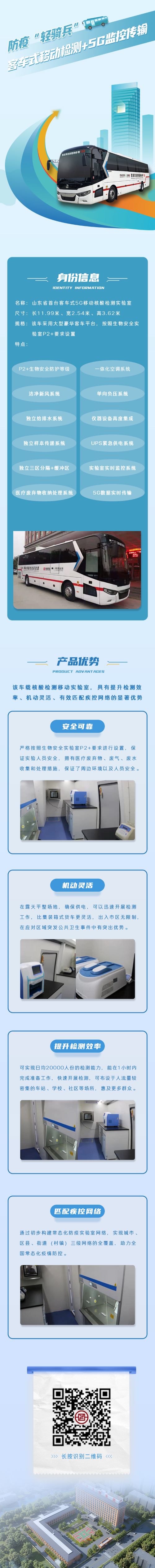 19日,該車在濟(jì)南銀豐華美達(dá)酒店舉行的山東省第三十次檢驗(yàn)醫(yī)學(xué)學(xué)術(shù)會(huì)議現(xiàn)場(chǎng)中亮相。據(jù)悉,該車采用大型豪華客車平臺(tái),按照生物安全實(shí)驗(yàn)室P2+要求設(shè)置,配備負(fù)壓過濾系統(tǒng)及潔凈新風(fēng)系統(tǒng),并整合銀豐基因的自動(dòng)化設(shè)備及實(shí)驗(yàn)室智能管理系統(tǒng),具備獨(dú)立的供水供電系統(tǒng)、醫(yī)療廢棄物收納處理系統(tǒng)、獨(dú)立三區(qū)分隔+緩沖區(qū)、5G數(shù)據(jù)實(shí)時(shí)傳輸系統(tǒng)等功能,檢測(cè)量混樣情況下,單車可實(shí)現(xiàn)日均2萬人份樣本檢測(cè),有效提升區(qū)域核酸檢測(cè)能力,在應(yīng)對(duì)區(qū)域突發(fā)公共衛(wèi)生事件中有突出優(yōu)勢(shì)。