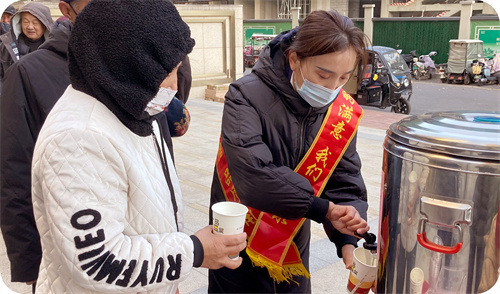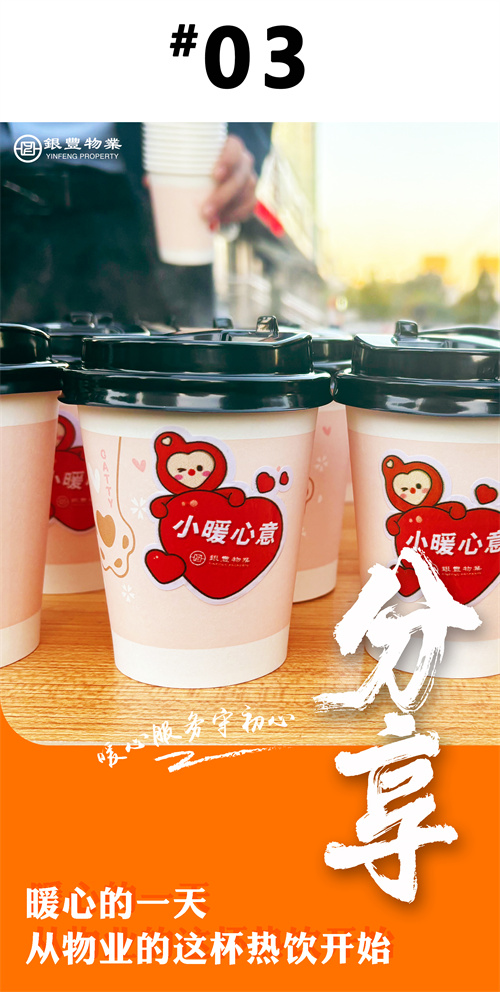 一杯杯的熱飲為業(yè)主驅(qū)除絲絲寒意,讓這個冬天不再冰冷,讓業(yè)主在寒冷的冬日從頭暖到腳,暖胃更暖心。